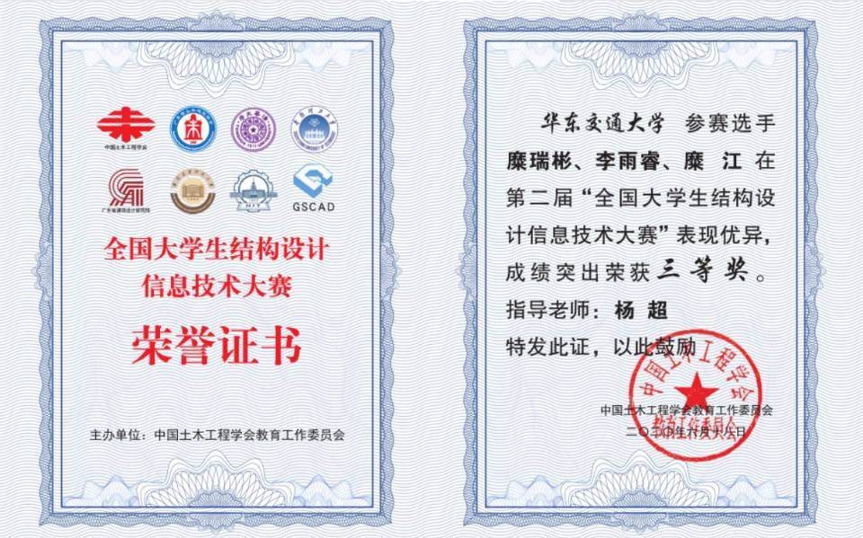 6月30日,“第二届全国大学生结构设计信息技术大赛”获奖名单揭晓,华东交通大学土木工程学院3支参赛队伍在结构工程教研室杨超博士的指导下获三等奖3项,在此次竞赛中,吃瓜网