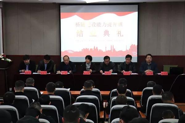 12月6日上午,江西省公路桥梁工程有限公司桥隧建设能力提升培训班结业典礼在土建楼200圆满举行。江西省交通工程集团有限公司副总经理彭德清、执行董事彭爱红、江西省公路桥梁工程有限公司执行董事、总经理杨文,副总经理查群旗、土建学院党委书记李立玲、党委副书记龙良华、土建学院桥梁所博士(班主任)郑尚敏出席典礼,桥隧建设能力培训班全体学员参加本次典礼。本次典礼由华东交通大学土建学院副院长耿大新主持。