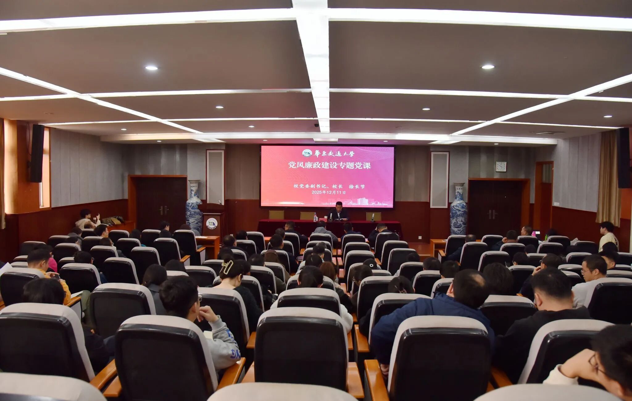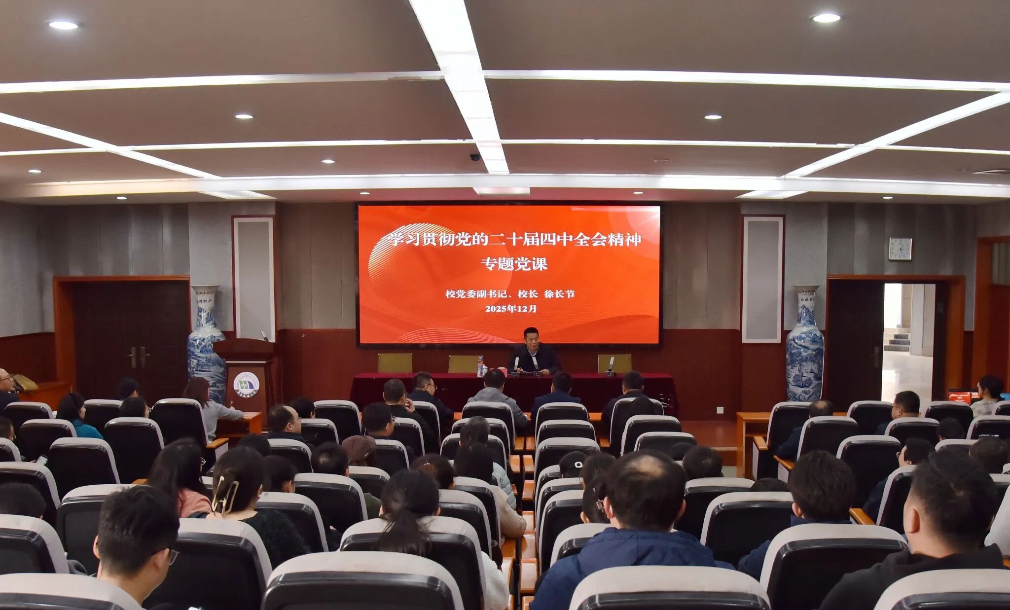 12月11日下午,校党委副书记、校长徐长节为分管和联系单位宣讲党的二十届四中全会精神,并讲授党风廉政建设专题党课。