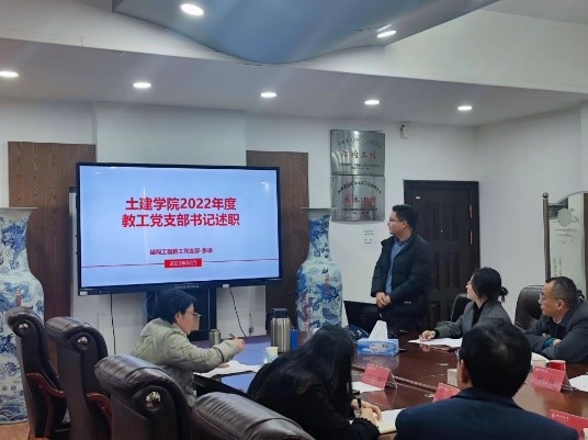 为推动全面从严治党向基层延伸,根据学校党委部署安排,结合学院《土木建筑学院关于开展2022年度基层党组织书记抓基层党建述职评议考核工作的通知》有关精神和相关要求,2月18日土木建筑学院召开2022年度基层党支部书记抓党建工作述职评议会议。学院党委委员、院班子成员、各党支部书记、师生党员代表参加会议,会议由院党委副书记郑轶主持。交通运输学院党委书记丁锋贵、党办校办副主任龙良华、交通运输学院党支部书记杨航到会督导。