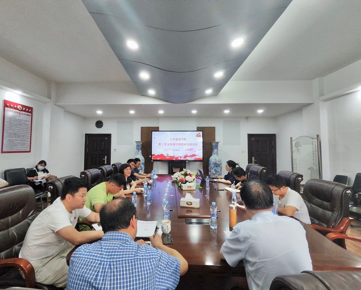 为深入开展学习贯彻习近平新时代中国特色社会主义思想主题教育,在全党大兴调查研究之风,针对当前教工党支部建设的痛点、堵点、难点,5月19日土木建筑学院召开教工党支部建设调查研究座谈会。本次座谈会由院党委书记陈水生主持,院党委副书记郑轶,院党委组织员,各教工党支部书记、支委参加座谈。