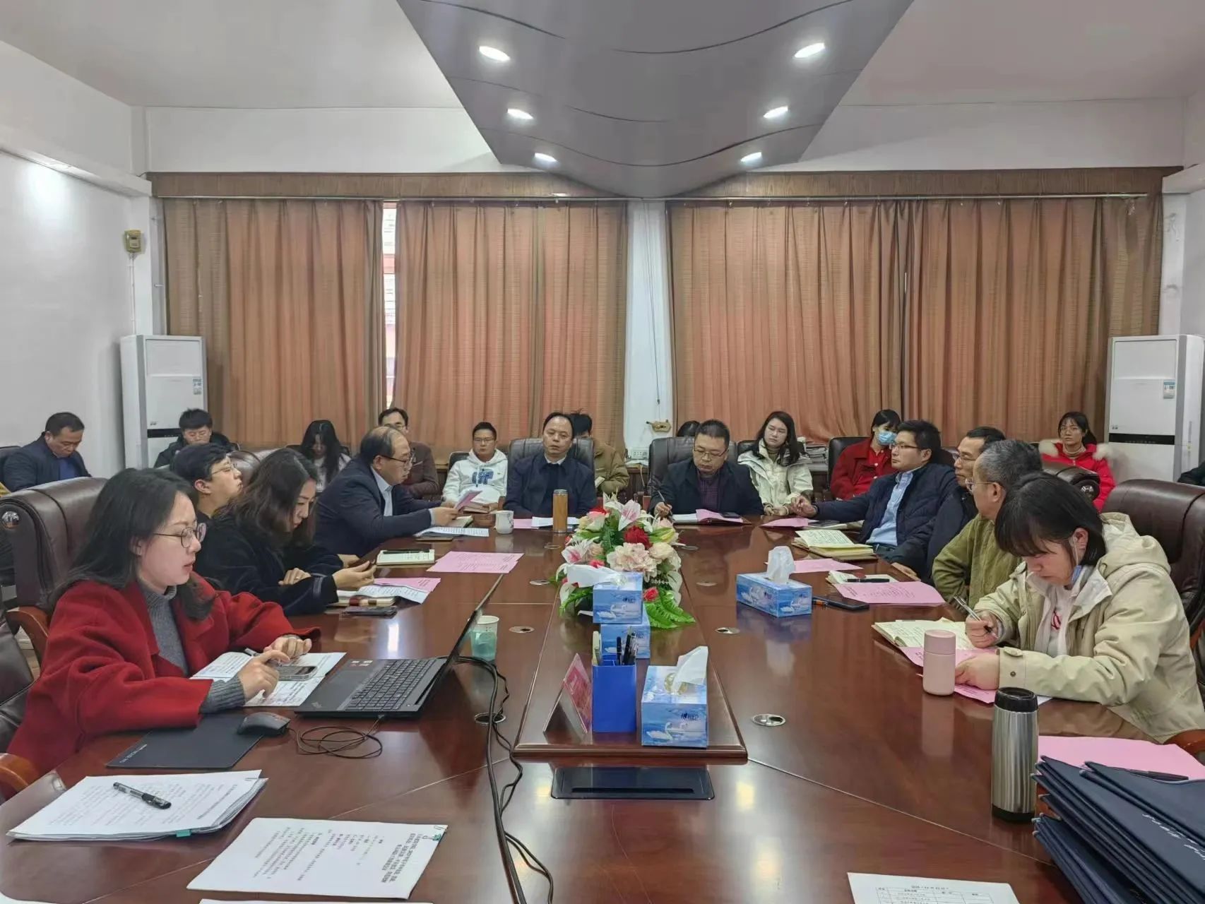 土木建筑学院于12月13日下午召开党建、思政、意识形态、民族宗教、平安建设、防范化解重大风险工作联席会议。学院各党委委员、院班子成员、各党支部书记及全体辅导员参加会议,院党委书记陈水生主持会议。