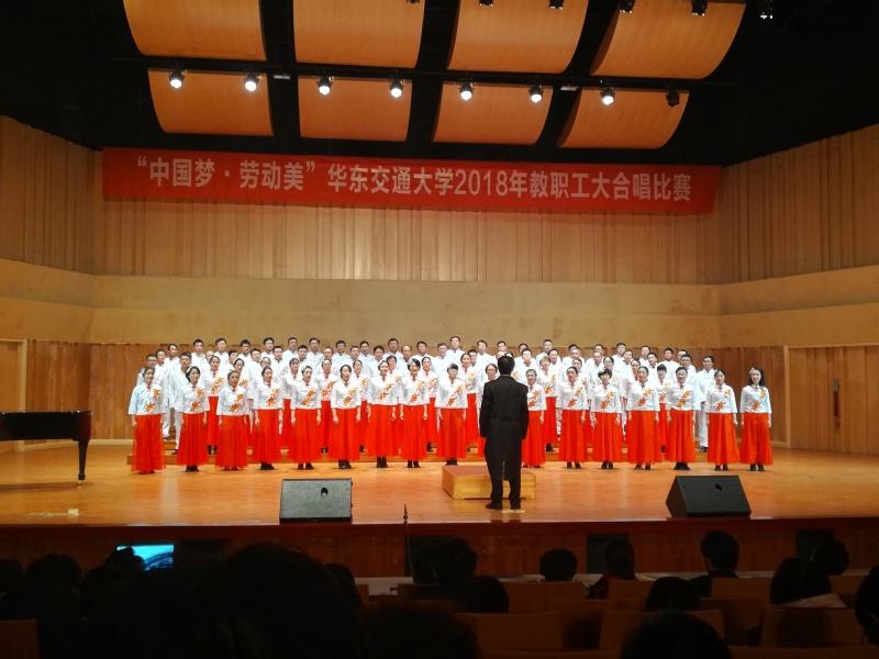 12月14日,校工会在艺术学院音乐厅举办了“中国梦·劳动美”华东交通大学2018年教职工大合唱比赛。此次比赛,旨在进一步弘扬劳动精神、工匠精神,唱响劳动托起中国梦的新时代主旋律。我院共有81名教师参加了此次演出,由李一晖老师担任指挥。