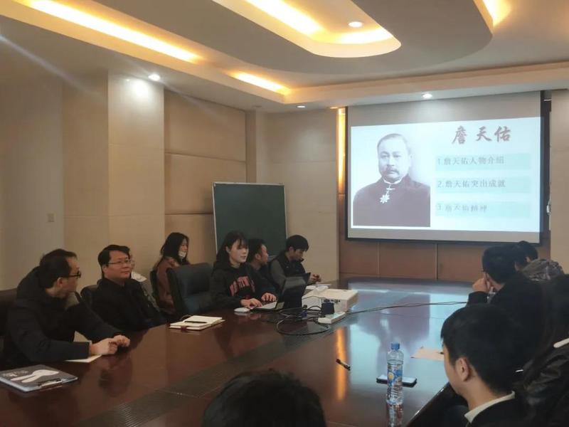詹天佑班学生党支部党员李萍向大家讲述詹天佑事迹。她主要从詹天佑先生的生平,唐胥铁路、滦河大桥、京张铁路等突出成就展开介绍,着重强调了爱国、创新、自力更生、艰苦奋斗的詹天佑精神。并以詹天佑名言:“各出所学,各尽所能,使国家富强不受外侮,以自立于地球之上。”结束分享。