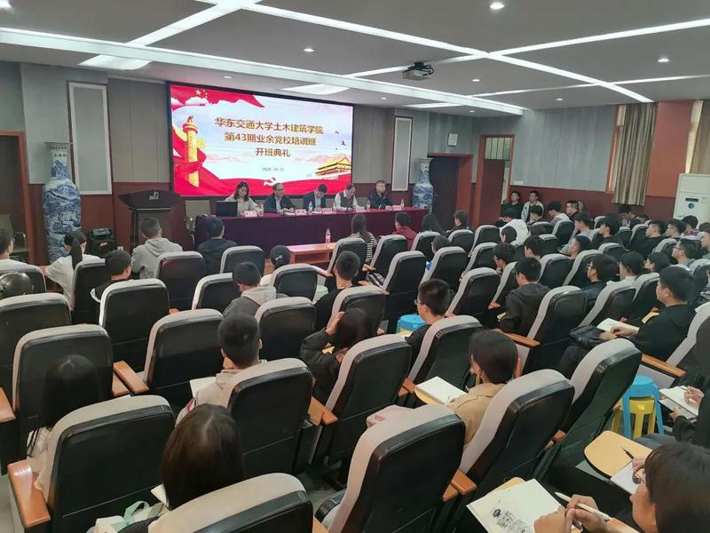 第43期业余党校培训班开班典礼在土建200会议室举行。校组织部副部长、党校校长魏永峰,土建学院党委书记、分党校校长陈水生,土建学院党委副书记、分党校副校长郑轶,土建学院院学工办主任兼团委书记闫伟,院党委组织员、党员教育管理中心负责老师万雯怡及第43期培训班全体学员参加本期开班仪式。仪式由万雯怡老师主持。