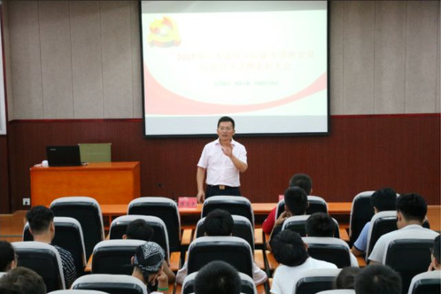 院党委副书记蔡卫平对带班党员和全体学生党员寄语,作为带班党员首先这是一份荣誉,其次更是一份责任,作为一名党员要成为一面旗帜,带班党员要做好新生和辅导员的桥梁纽带作用,努力为新生班级打造良好的班风学风,增强班级凝聚力。