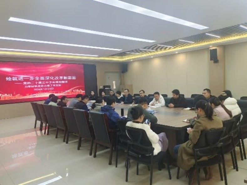 为深入学习贯彻党的二十届三中全会精神,12月3日,土木建筑学院力学材料党政办教工党支部以进一步全面深化改革,绘就新时代高校教育事业新蓝图为主题,开展学习党的二十届三中全会精神主题党日活动。力学材料党政办教工党支部书记黄永虎主持会议,院党委书记刘永胜、副院长陈莘莘以及全体支部成员参加会议。