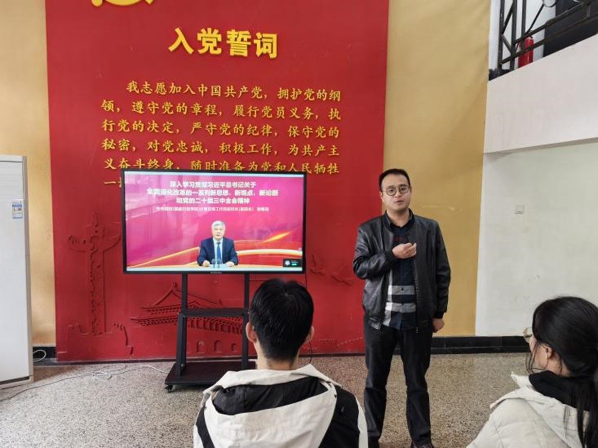 麻宏强围绕党的二十届三中全会的核心内容与重要意义进行了概括性阐述。同时,他结合个人实际情况与学习经历,详细论述了党的二十届三中全会精神与当前教育体制改革的重要关系。他提到,教风与学风建设是相辅相成的,教师与学生的共同努力是实现教育高质量发展的基础。最后,他指出全体成员要以党的二十届三中全会精神为指引,将全会精神融入日常学习,将理论学习成果转化为实践动力。