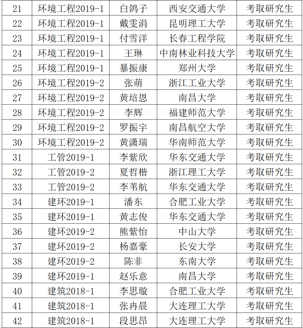 繁花似锦,硕果累累,考研捷报传。时光不负有心人,星光不负赶路人!那些为了赶路低头不语的日子,会成为星星点亮未来,那些看似不起波澜的日复一日,会突然有一天让人看到坚持的意义,心有所期,全力以赴,定有所成。祝贺我院2023届考研上岸的毕业生们,努力终不负,未来亦可期!学院真诚祝愿考取硕士研究生的同学们在今后的专业领域学有所成,同时也期望我院学予以此为榜样,汲取奋进力量!
