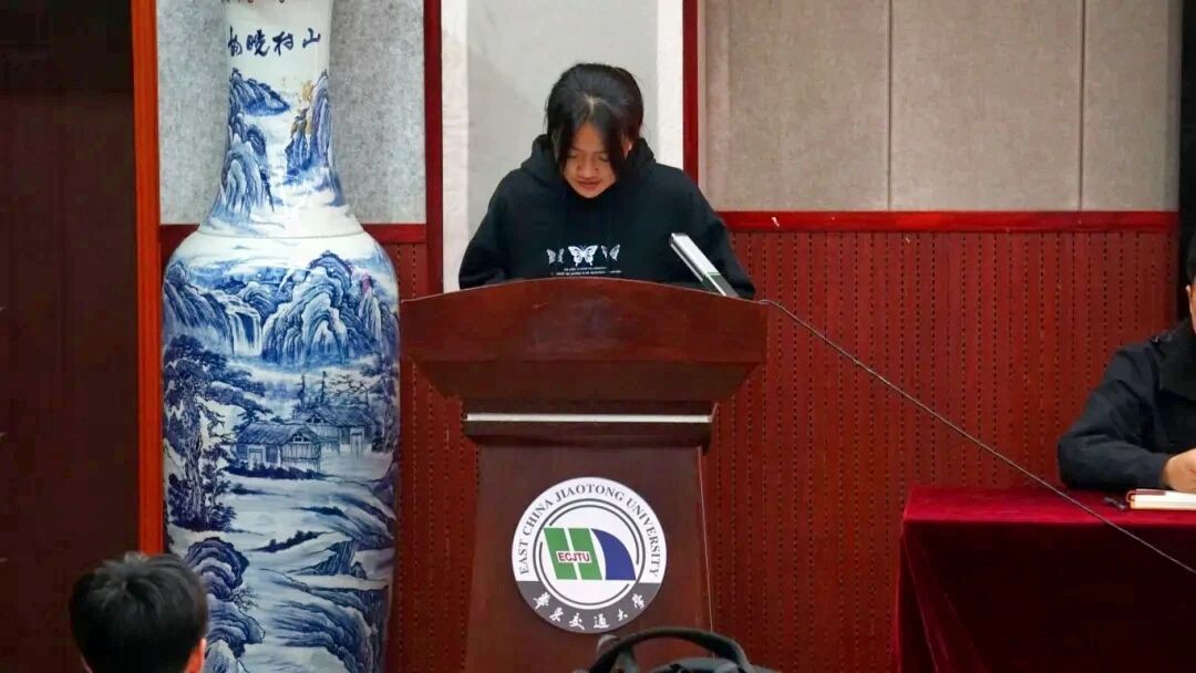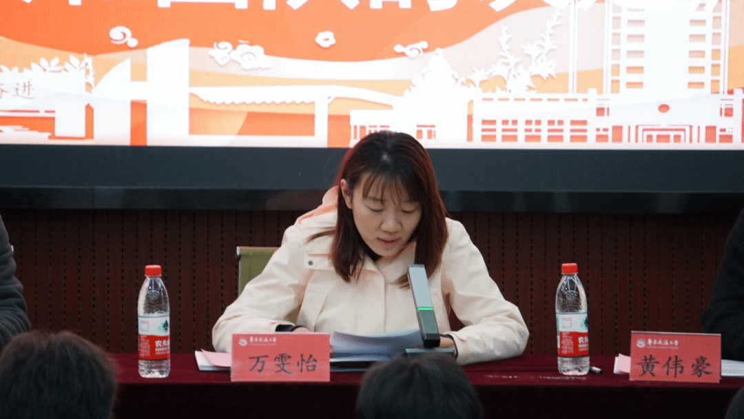 万雯怡宣读《土木建筑学院关于表彰第六届校运会优秀学生个人和团队的决定》。