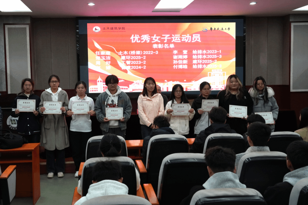 为表彰在华东交通大学第六届运动会中奋勇拼搏、展现卓越体育精神与团队风采的个人与集体,进一步推动学院体育文化建设,11月17日晚,我院于土建楼200报告厅隆重举行第六届校运会表彰大会。学院党委副书记郑轶、团委书记兼学工办主任万雯怡、兼职团委副书记严安迪出席本次大会。会议由学院学生体育负责老师黄伟豪主持,全体田径运动员、各院队成员代表、及体育工作者共同参加。