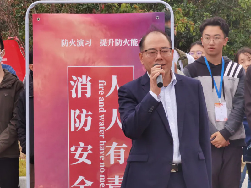 演习伊始,郑轶感谢了校保卫处对我院平安建设工作的支持和对本次演练的指导,并向全体师生介绍了土建学院平安建设工作的情况和安全稳定工作存在的问题。他表示这次活动旨在提高学生的检查消除火灾隐患、扑救初期火灾、组织疏散逃生以及消防安全教育培训的能力。郑轶指出消防安全责任重大,希望到场师生以身作则、主动担当,做一名合格的消防知识宣传员、消防隐患检查员、消防安全监督员,不用违规电器、不骑电动车,会报警、会救火、会逃生,落实好消防安全工作,共同营造平安校园。最后他预祝此次消防演练圆满成功,全体师生能通过这次活动增强各方面能力。