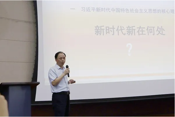 陈水生与在座师生共上一堂微党课,他就习近平新时代中国特色社会主义思想核心要义、核心内容、理论品格展开讨论,指出我院党建工作在新的历史阶段要贯穿强烈问题意识,鲜明问题导向,要以“围绕中心抓党建,抓好党建育人才”为指导思想,明确各阶段党建目标,落实学院育人管理方案。