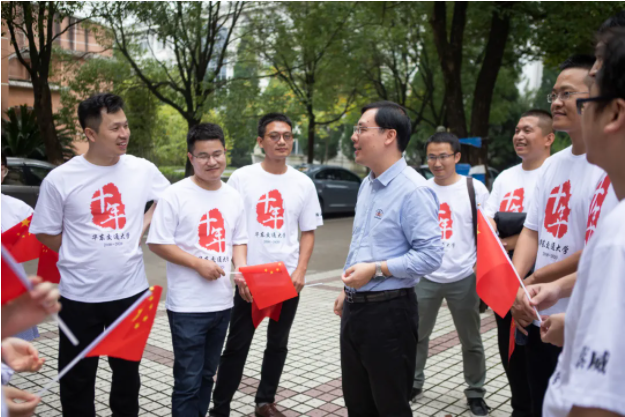 其余三位恩师代表分别进行发言。易欣在讲话中提到,他和这批毕业生同一年“入学”,同这些学生一起成长,留下深厚的“革命”友谊。刘莉老师在发言中说道,各位校友现在正值事业黄金期,未来有无限可能,她鼓励大家要在最应该努力的时间,做最大的努力。乐建明同样指出大家正处于而立之年,前途无量,希望大家在生活、工作中多思考、多学习,努力提升自身综合素养。