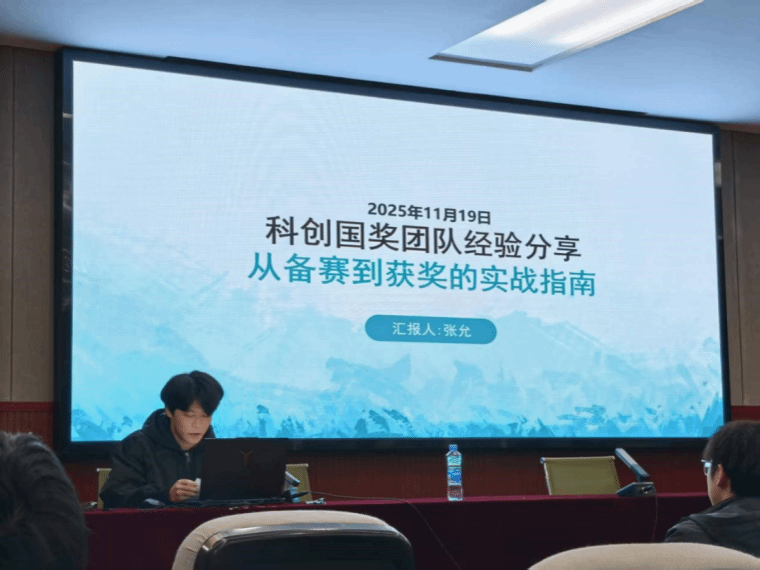 为积极推动双创教育,引导大学生在双创竞赛中提升自我,近日,我院在教九栋200会议室举办 “筑创大讲堂” 竞赛分享会,学院兼职团委副书记严安迪老师主持,中国国际大学生创新大赛(2025)总决赛国铜获奖团队负责人吴俊楷、第十九届“挑战杯”全国大学生课外学术科技作品竞赛国二获奖团队负责人张允担任主讲嘉宾,分享国赛夺奖经验、备赛历程与核心秘籍。