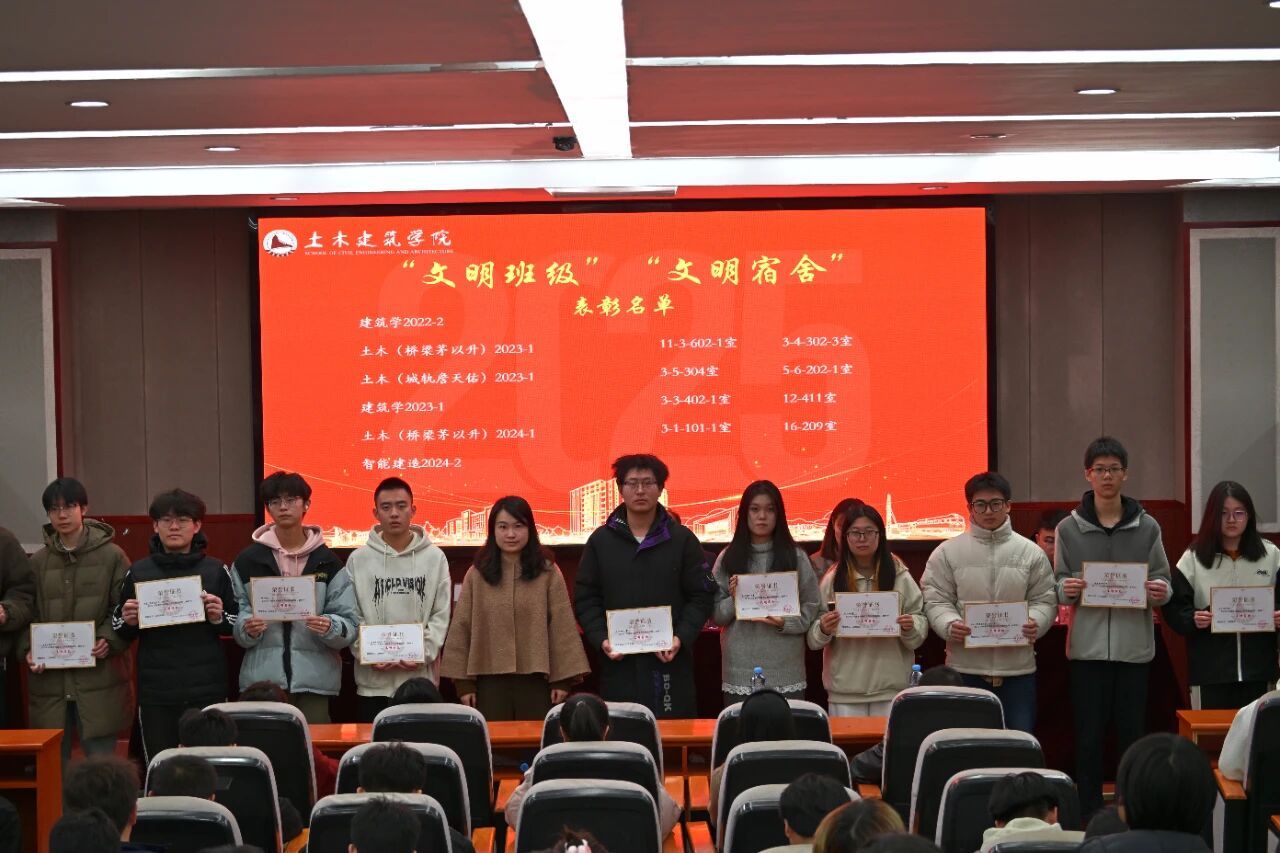 学工办副主任、团委副书记贺慧文宣读《土木建筑学院关于表彰2025年度“文明班级”“文明宿舍”的决定》。