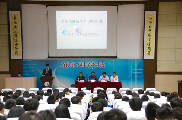 4月28日,在图书馆202举行了14级土木工程专业分流指导会,土木建筑学院党委副书记程浩老师,院长助理耿大新老师,结构工程研究所所长许开成老师,桥梁工程研究所所长程海根老师,学工办主任及14土木4,5,6班辅导员闫伟老师,学工办副主任及14土木3,7,8,9班辅导员黄水梅老师参加会议。