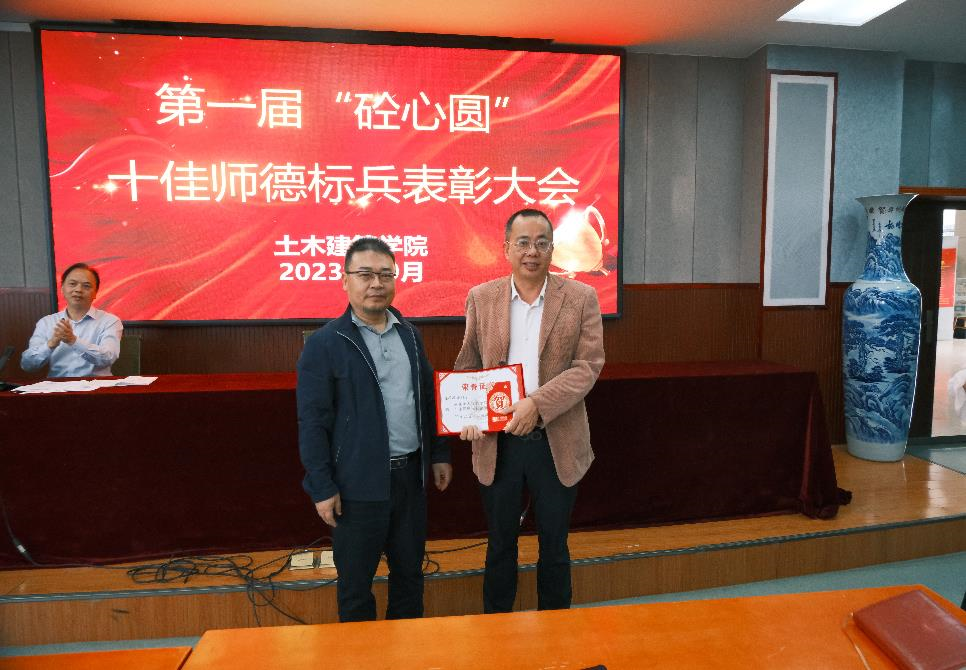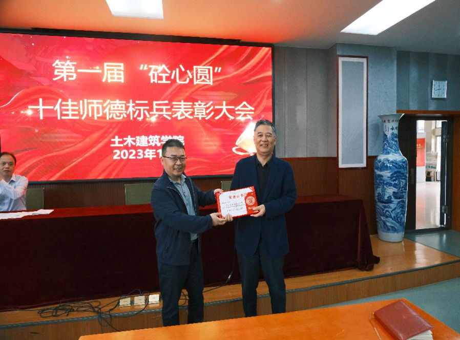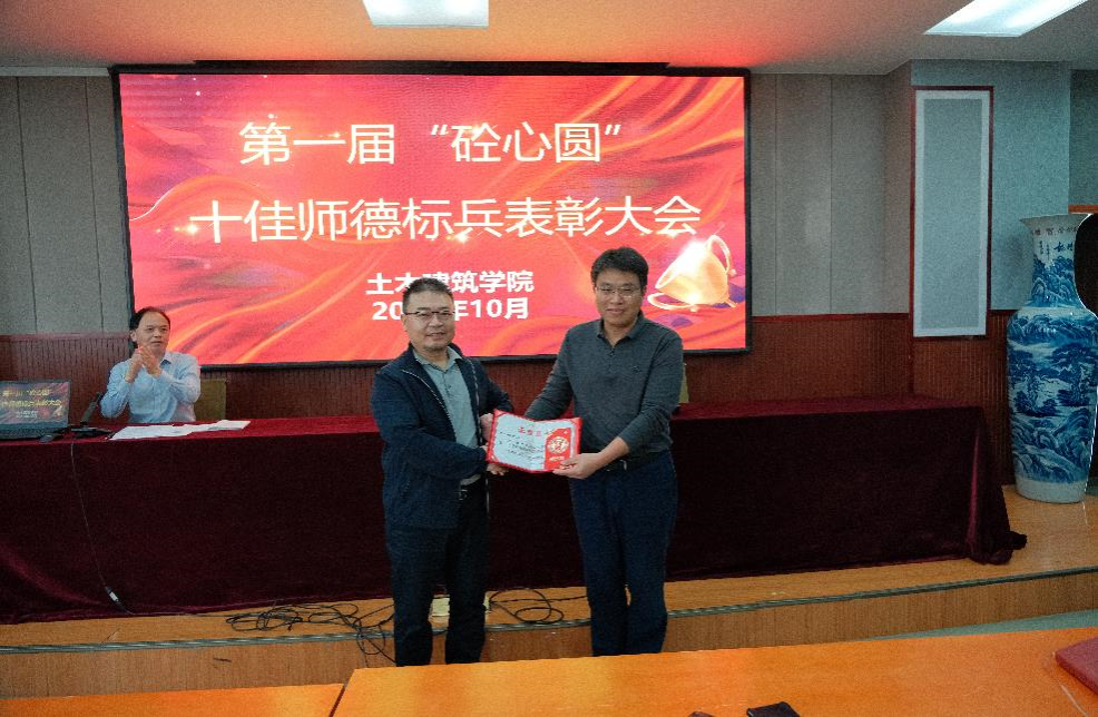 在土建楼教9栋200召开了第一届“砼心圆”十佳师德标兵表彰大会,学院全体教职工出席本次会议,会议由院党委书记陈水生主持。