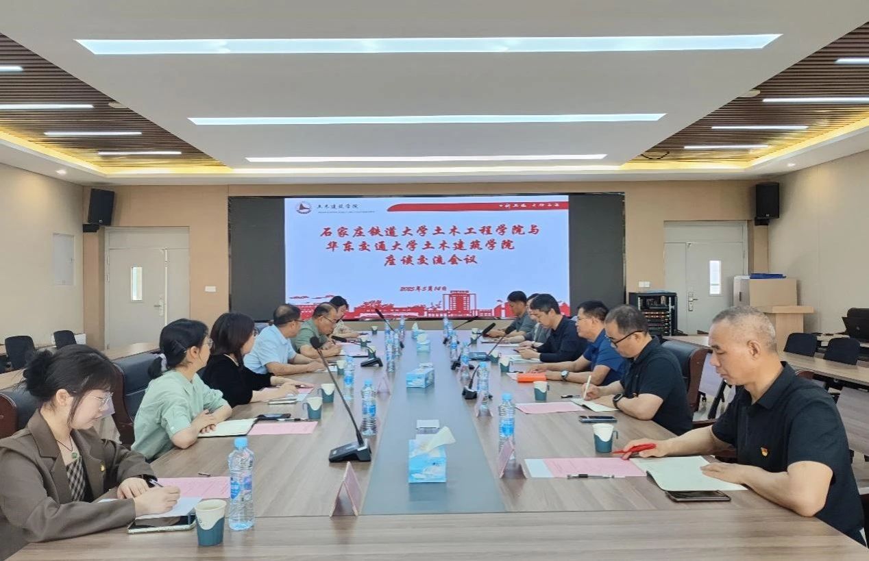 为深化高校党建与人才培养经验互鉴,5月14日上午,石家庄铁道大学土木工程学院党委书记韩东海,党委副书记、副院长王长瑞一行赴我院走访交流。座谈会由土木建筑学院党委书记刘永胜主持。