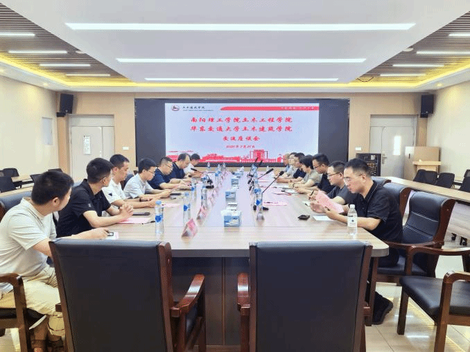 南阳理工学院土木工程学院院长陈孝珍、副院长宋建阳、土木工程专业负责人陈峰、道路桥梁与渡河工程专业负责人李岩、给排水科学与工程专业负责人程鹏、工程管理专业负责人冯晨曦、智慧水利专业筹建负责人王欣,我院院长庄海洋、副院长麻宏强、教学事务部主任吴必涛、工程管理系主任金峻炎、智能建造系主任胡文韬、桥梁系副主任吴刚、道路系副主任许竞、实验中心主任蒋认、教科办主任吴秋兰参加本次座谈会。