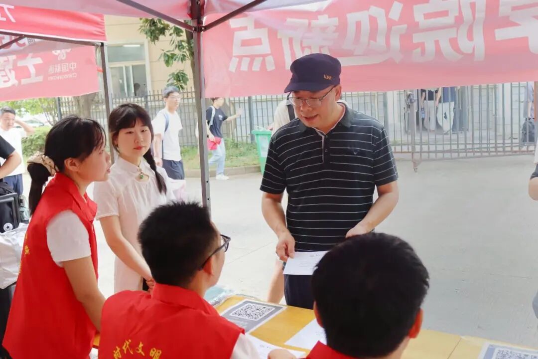 学院党委副书记郑轶与新生辅导员前往迎新报到点,详细了解新生注册流程与报到进展、迎新工作开展情况以及新生报到情况。亲切慰问迎新志愿者,对各迎新工作点井然有序的安排和志愿者饱满的精神状态给予了充分肯定。