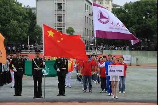 随着旌旗招展飘扬,呼声阵阵,开幕式正式拉开了序幕。“土木建筑,交大门户,藏龙卧虎,唯我独步”伴随着响亮的口号声,土建学院的老师和同学们身着院衫、手拿花球,昂首阔步地走到了主席台前,用一幕幕的舞台剧演绎了他们对交大最深刻的记忆。