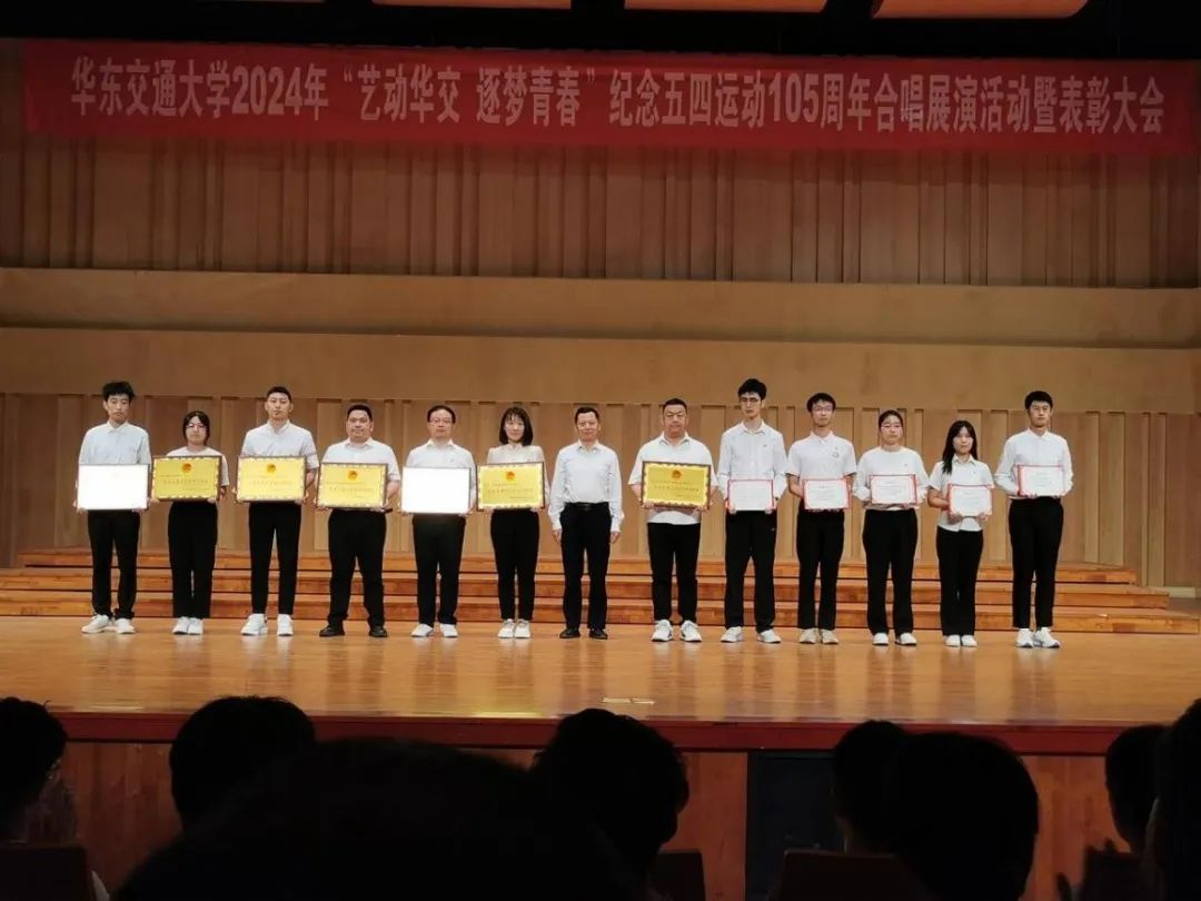 校党委书记柳和生为合唱展演活动“最佳表演奖”“一等奖”“二等奖”“三等奖”颁发奖牌