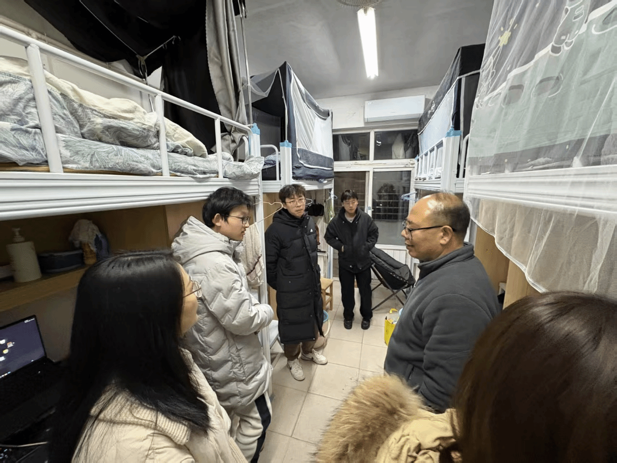 郑轶亲切询问同学们的生活近况。他对寝室卫生、用电安全等方面进行仔细检查,引导学生从细微处着手,以更加饱满的精神面貌迎接新学期。他提醒同学们要将寝室安全牢记在心,落实安全用电相关制度,保持整洁有序的寝室环境。同时,他鼓励同学们树立积极、正确的学习态度,努力学习专业知识、扎实本领,充分利用课余时间参与各类文体活动,度过充实、美好的大学时光。