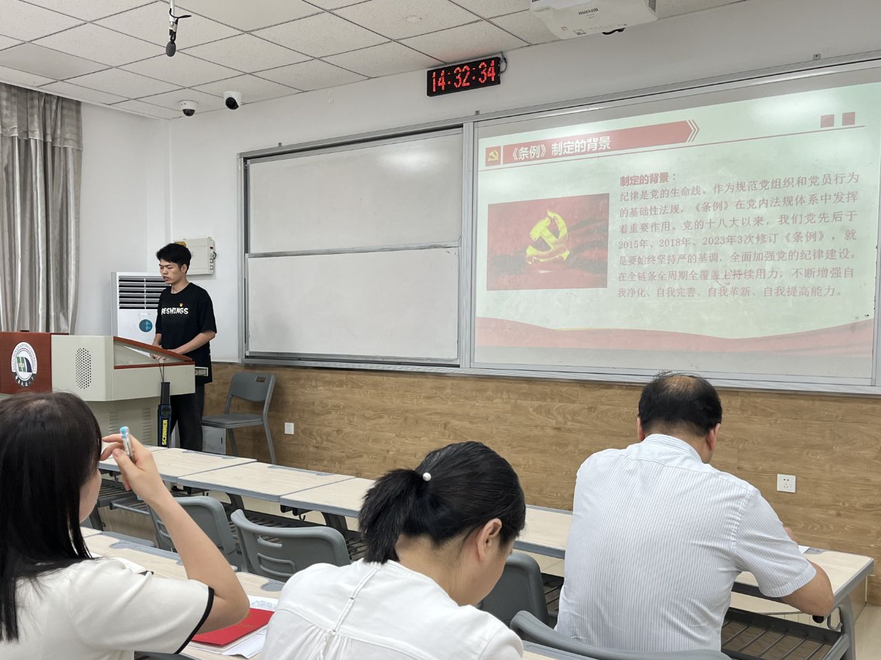 为推动党纪学习教育走深走实,切实增强党员的思想认识和遵守党纪的自觉性,6月14日下午,防灾减灾工程研究生党支部与建筑学学生党支部联合举办“党纪学习教育”主题党日活动。土木建筑学院党委副书记郑轶列席指导,全体党员参会。