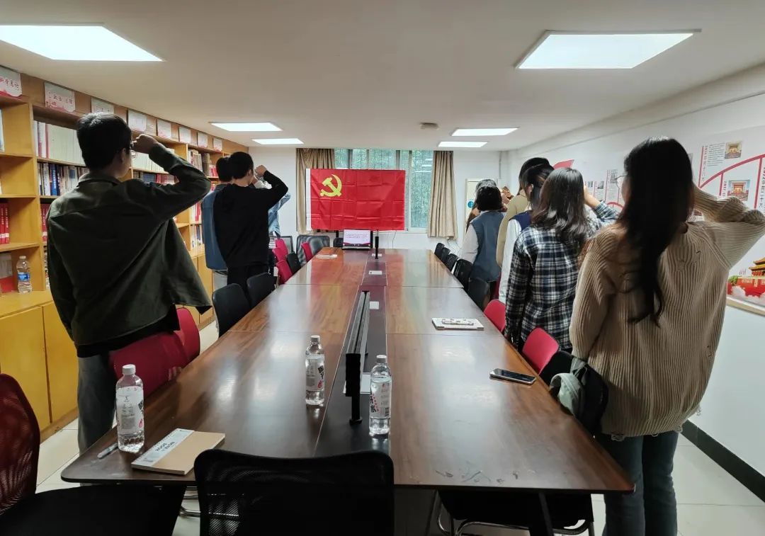 在支部副书记王小莉同志的带领下,支部同志们一起重温入党誓词:“我志愿加入中国共产党,拥护党的纲领,遵守党的章程,履行党员义务,执行党的决定,严守党的纪律, 保守党的秘密,对党忠诚,积极工作,为共产主义奋斗终生,随时准备为党和人民牺牲一切,永不叛党。”