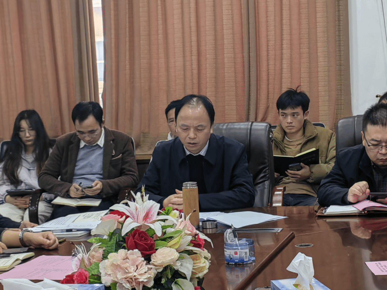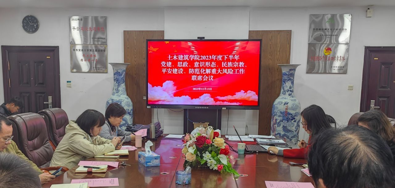 土木建筑学院于12月13日下午召开党建、思政、意识形态、民族宗教、平安建设、防范化解重大风险工作联席会议。学院各党委委员、院班子成员、各党支部书记及全体辅导员参加会议,院党委书记陈水生主持会议。