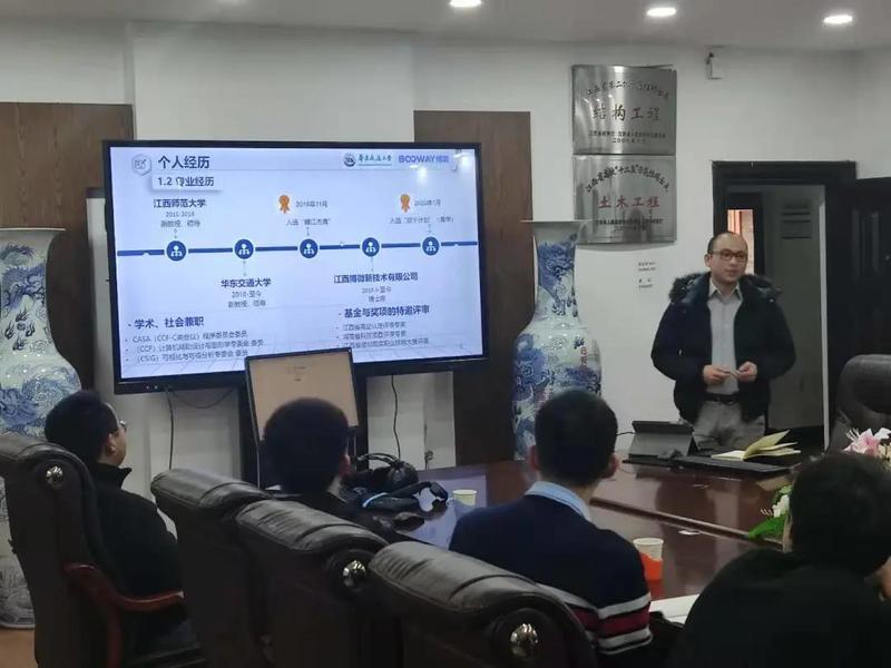 2020年12月12日上午9点,我院开展华东交通大学第四十三期孔目湖学术沙龙活动,该活动在土建楼302会议室举办,活动主题为“智慧建造智慧土木”。本期学术沙龙邀请到的主讲嘉宾为罗国亮博士,活动由土建学院副院长耿大新主持,参加会议的主要人员为土木建筑学院学科相关人员和对该领域感兴趣的师生。
