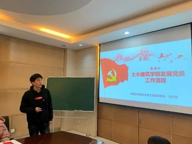 为深入贯彻落实土木建筑学院党委委员联系基层党支部工作制度,12月7日下午4时,院党委青年委员冯青松教授联系结构交运研究生党支部活动在铁工所301会议室顺利开展,活动由党支部书记罗青峰主持,支部全体党员和部分入党积极分子共31人参加。此次活动内容主要分为两个部分:一是和冯青松教授一起学习党章知识和入党流程的微党课,二是冯青松教授与党支部的座谈。