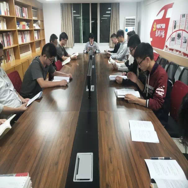 首先,全体成员围坐在一起集中学习讨论。大家认真阅读自己的书籍并进行思考。在大家陆续结束阅读后,互相分享了自己有感悟的片段并讨论。在这个过程中,大家不仅牢记了自己所学的内容,也在讨论中加深印象,有了自己的思想。