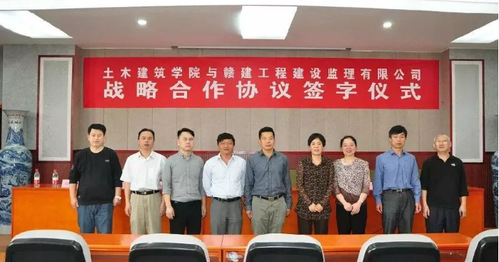 仪式上,双方代表进行协议签字和协议互换。同时,赣建工程建设有限公司向我校土木建筑学院捐赠赣建监理奖学金十五万元。徐长节对赣建公司捐赠的奖学金表示了衷心的感谢。按照协议,双方将在实习、实训基地共建、人才交流、教育培训、行业研究、毕业生就业、优秀学生奖学金、资源共享等领域开展合作。