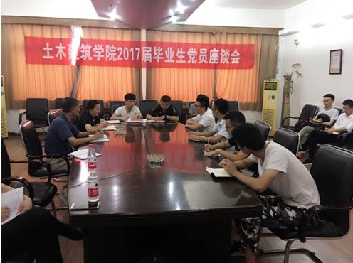 2017年6月7日下午4点,土木建筑学院“党员固定活动日”暨2017届毕业生党员代表座谈会在土建学院304会议室召开。校组织部副部长李雪峰、院党委书记李立玲、院党委副书记程浩、校组织部王桂清老师、院学工办主任兼团委书记闫伟、院党委组织员万雯怡、各党支部书记及20余名毕业生党员代表参加座谈会。会议由院党委副书记程浩主持。