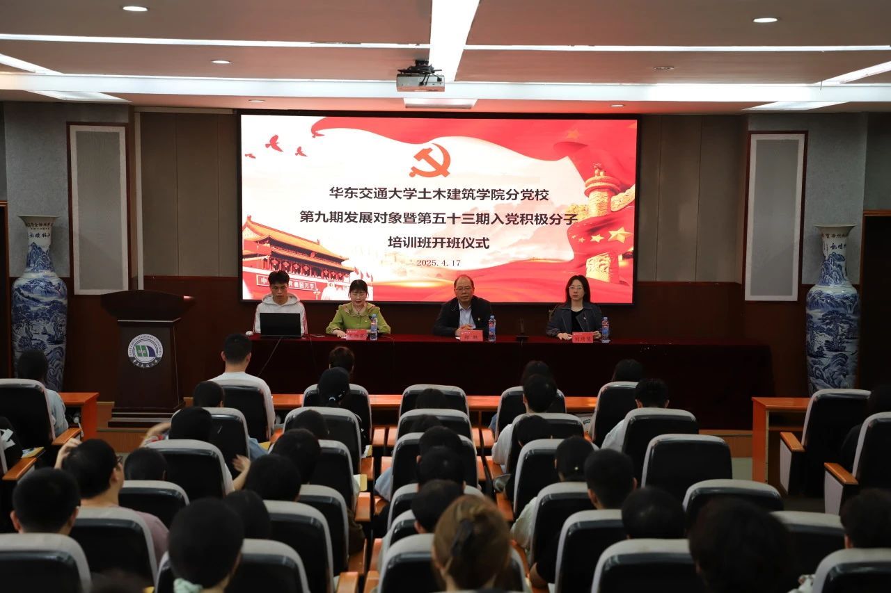 4月17日,华东交通大学土木建筑学院分党校第九期发展对象暨第五十三期入党积极分子培训班开班典礼于教9栋200报告厅举行。院党委副书记郑轶,院党委委员、党委组织员刘琦慧出席会议,会议由分党校副班主任王雨晨主持,本期发展对象和入党积极分子参加会议。