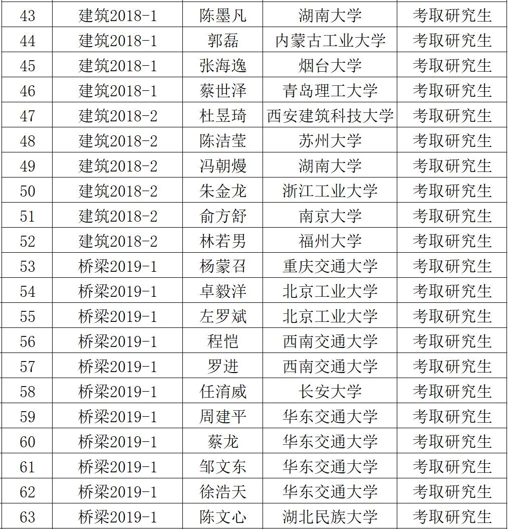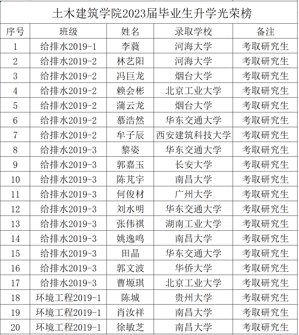 繁花似锦,硕果累累,考研捷报传。时光不负有心人,星光不负赶路人!那些为了赶路低头不语的日子,会成为星星点亮未来,那些看似不起波澜的日复一日,会突然有一天让人看到坚持的意义,心有所期,全力以赴,定有所成。祝贺我院2023届考研上岸的毕业生们,努力终不负,未来亦可期!学院真诚祝愿考取硕士研究生的同学们在今后的专业领域学有所成,同时也期望我院学予以此为榜样,汲取奋进力量!