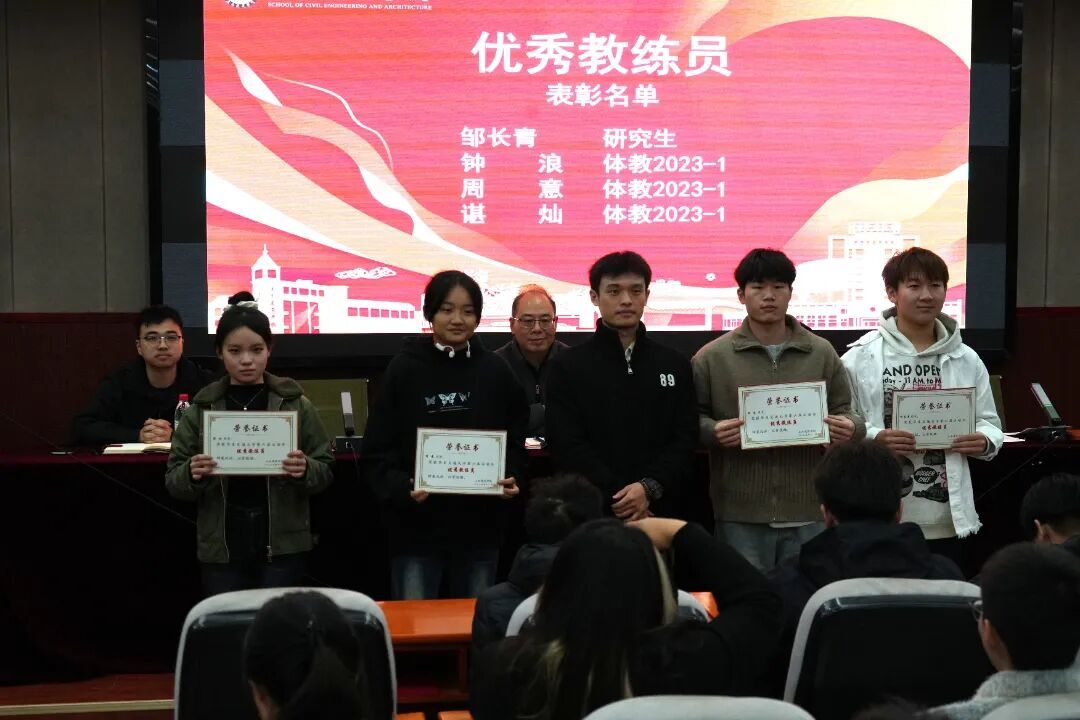 为表彰在华东交通大学第六届运动会中奋勇拼搏、展现卓越体育精神与团队风采的个人与集体,进一步推动学院体育文化建设,11月17日晚,我院于土建楼200报告厅隆重举行第六届校运会表彰大会。学院党委副书记郑轶、团委书记兼学工办主任万雯怡、兼职团委副书记严安迪出席本次大会。会议由学院学生体育负责老师黄伟豪主持,全体田径运动员、各院队成员代表、及体育工作者共同参加。