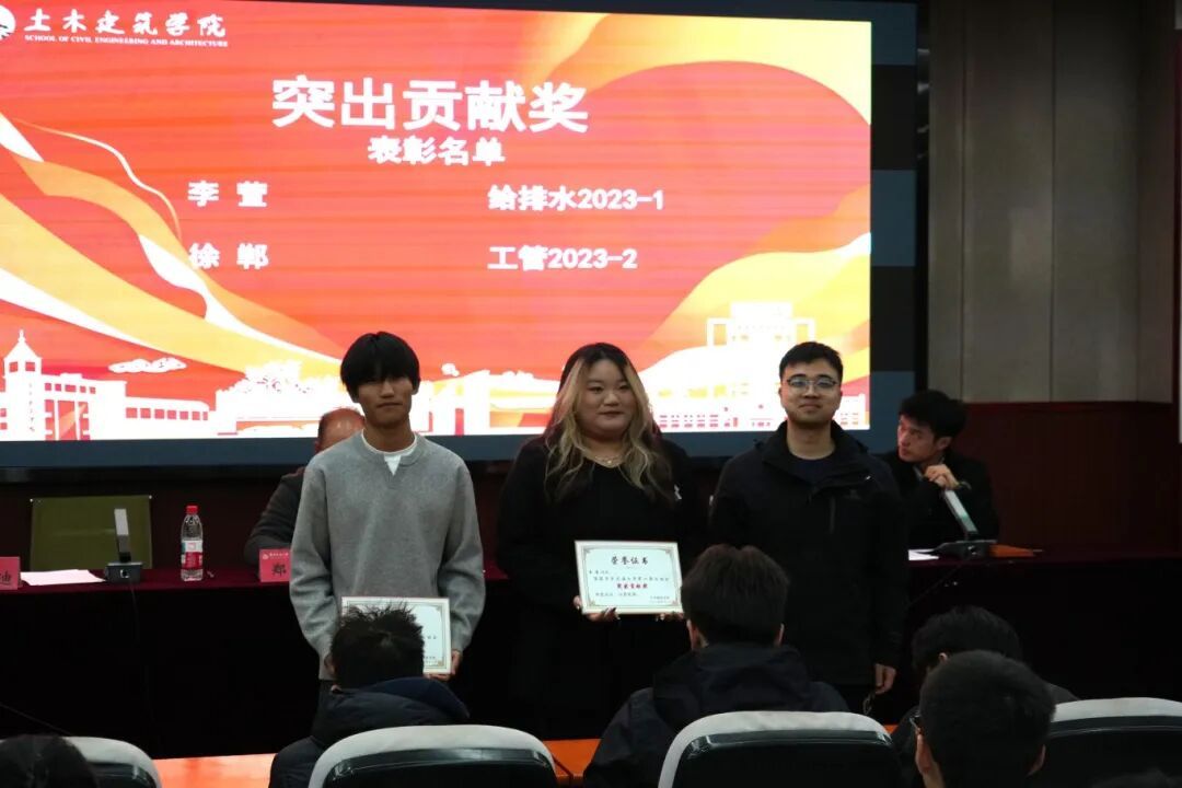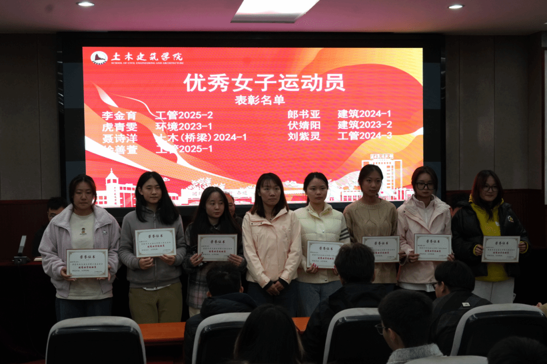 万雯怡宣读《土木建筑学院关于表彰第六届校运会优秀学生个人和团队的决定》。