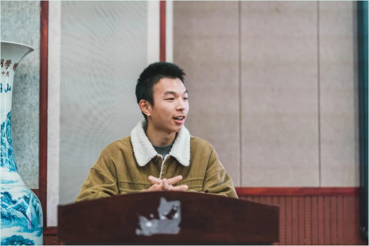 土建学院青年志愿者协会理事长葛竞向大家讲述自己的志愿服务故事。他分享了自己在青协这些年的经历,鼓励同学们多参加志愿活动,并在其中收获成长。