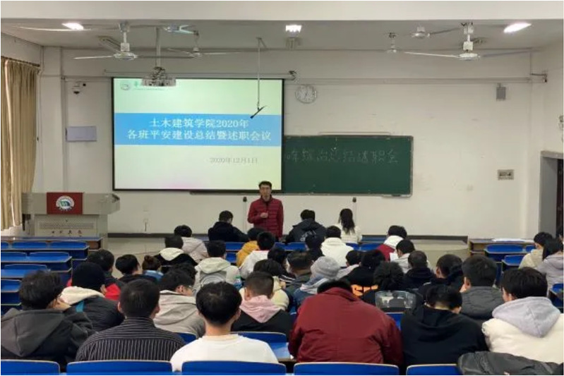 在会议中,土建学院各班级综治负责人代表上台做述职报告,并分享本班综治经验。19土木詹天佑负责人代表分享安全教育、组织建设及班风建设对治理班级的重要性;19土木茅以升负责人代表总结班风与思想建设对本班同学学业和生活上的帮助;20测绘负责人代表介绍轮班制度和组织团建对班级建设的帮助。