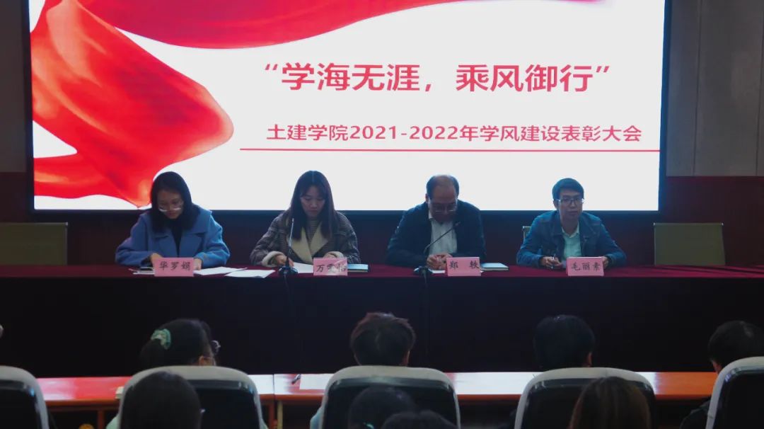 为建设良好的学风,营造一个欣欣向荣的学院风貌,土建学院于11月18日在土建200召开“土建学院2021-2022学风建设表彰大会”。党委副书记郑轶、学工办主任兼团委书记万雯怡、学工办副主任毛丽素、团委副书记华罗娟参加会议。