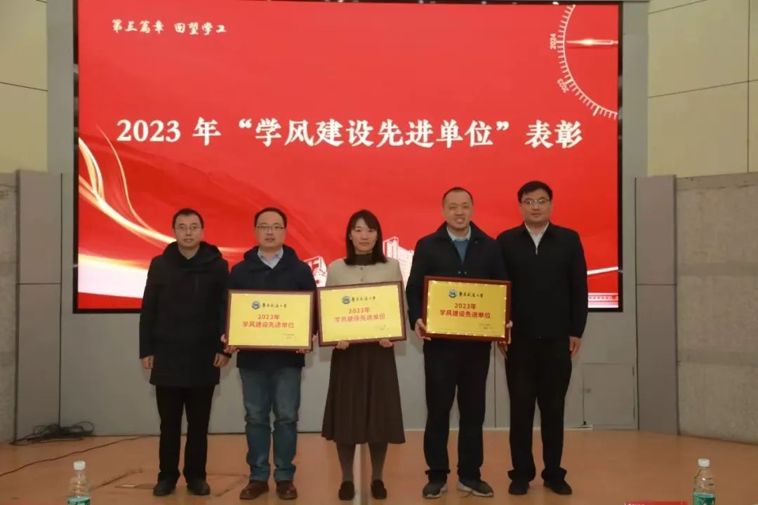 郑轶对学工队伍过去一年的辛勤付出表示感谢,并对取得的优异成绩表示祝贺。他总结梳理了学团工作中的新情况、新问题,以及工作中的不足和短板,并从五个方面提出了2024年的工作设想、工作方向和工作目标。他指出,在学生思政方面,要更有特色,更有亮点;在学风建设方面,有更好举措,更好成绩;在学生安全方面,能更加稳定,更加放心;在学生骨干方面,要更能奉献,更能担当;在学工队伍方面,要更为出色,更为出彩。