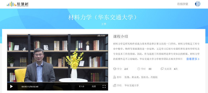 2018年,张豫副教授带队,精心录制了《材料力学》慕课课程,获得江西省精品在线开放课程,并在智慧树和中国大学MOOC两个大型教育平台上线运行,至今已经成功开课3次。