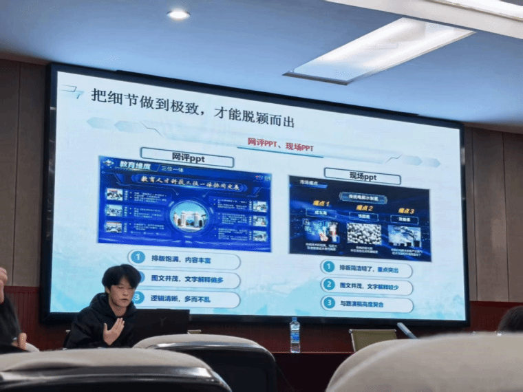 细节与预判决胜 把控演讲台风、时间分配及设备调试等细节,确保高效传递核心亮点;提前预判“技术落地”“市场推广”等评委高频质疑,备好答辩策略,保障演示从容有序。