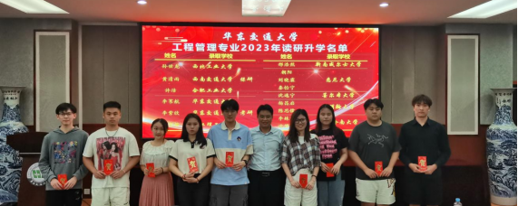 近三年,工程管理专业学生读研升学率:2023年为32.6%,2022年为32.6%,2021年为46.7%。读研的国内学校主要有西北工业大学、重庆大学、中南大学、北京交通大学、西南交通大学、武汉理工大学、中国矿业大学、合肥工业大学、福州大学、深圳大学、华东交通大学、兰州交通大学、浙江理工大学等,国外的学校有伦敦大学学院、新南威尔士大学、墨尔本大学、悉尼大学、昆士兰大学、香港理工大学、香港城市大学、香港岭南大学、曼彻斯特大学、南安普顿大学、利兹大学、伯明翰大学、谢菲尔德大学、莱斯特大学等。