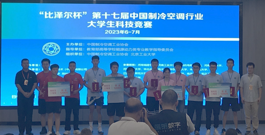 2023年7月10-11日,我院建筑环境与能源应用工程专业2020级本科生张强、陈永军、杨学斌三名同学,在专业教师的带领下赴河南省郑州市参加“比泽尔杯”第十七届中国制冷空调行业大学生科技竞赛,荣获本科生组三等奖。
