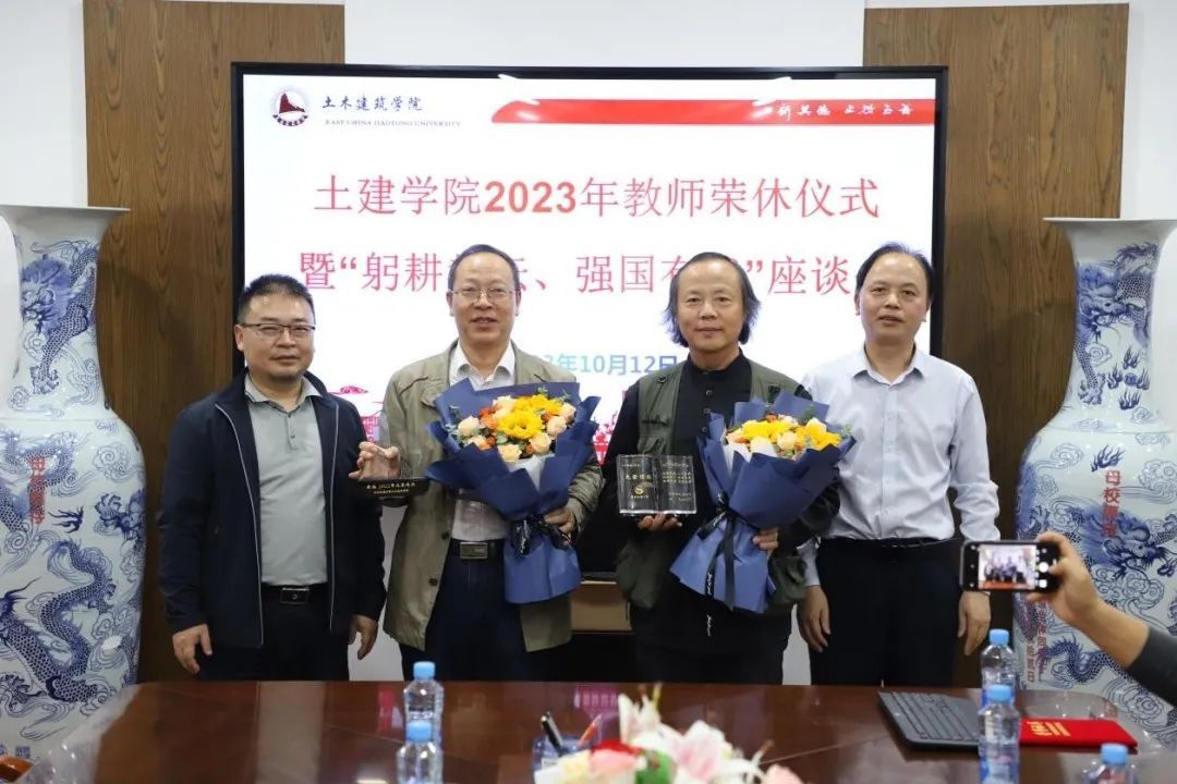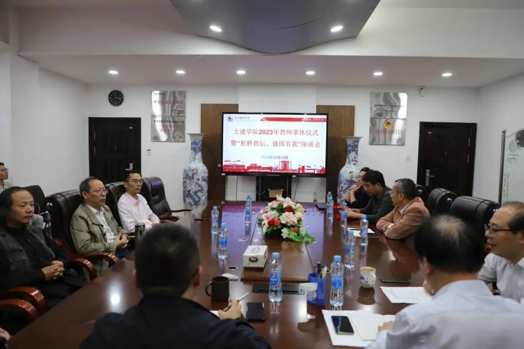 10月12日下午3点,土建学院于土建楼302举行了2023年教师荣休仪式暨“躬耕教坛、强国有我”座谈会。土建学院党委书记陈水生、院长庄海洋、党委副书记郑轶、副院长陈莘莘、退休教师代表、新引进教师代表、第一届“砼心圆”十佳师德标兵代表、退休教师所在部门教师代表参加了座谈会。座谈会由党委副书记郑轶主持。