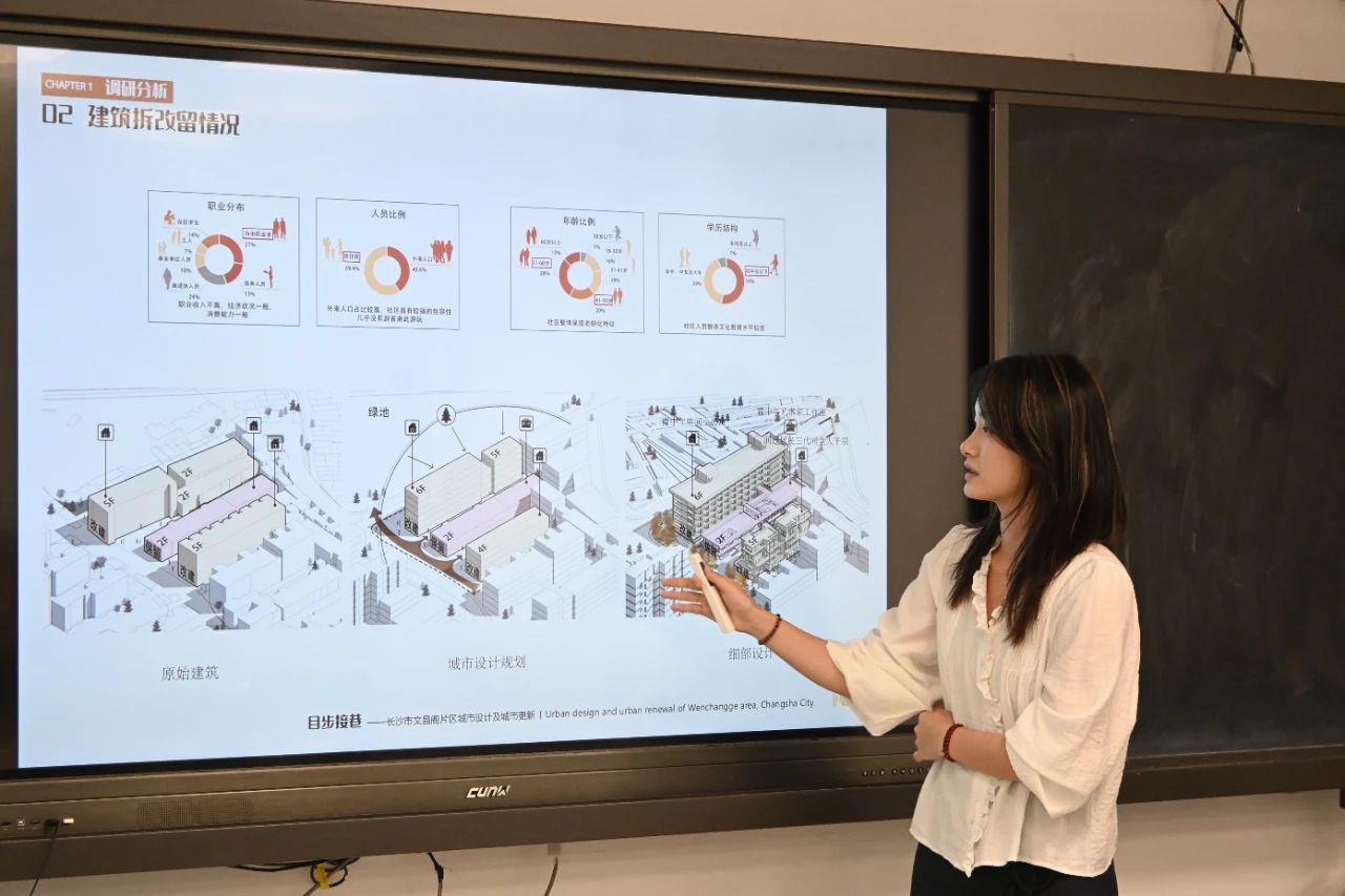 此次交通建筑联合毕设以“长沙市文昌阁片区城市设计及城市更新”为主题,深入挖掘长沙城市独特的历史底蕴、文化脉络和风貌特色,对该历史街区的城市更新策略提出有益的探索。建筑学专业2020级毕业班学生王小莉、方思佳、陈佳、袁小岚在万煜敏、王金金老师的共同指导下,通过三个月的不懈努力,历经开题研讨、中期锤炼与终期答辩,四位同学的设计作品“目步接巷——长沙市文昌阁片区城市设计及城市更新”荣获“优秀设计奖”。